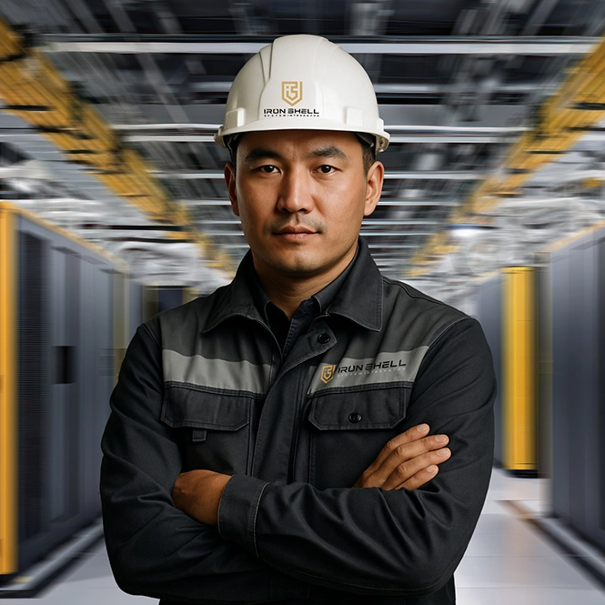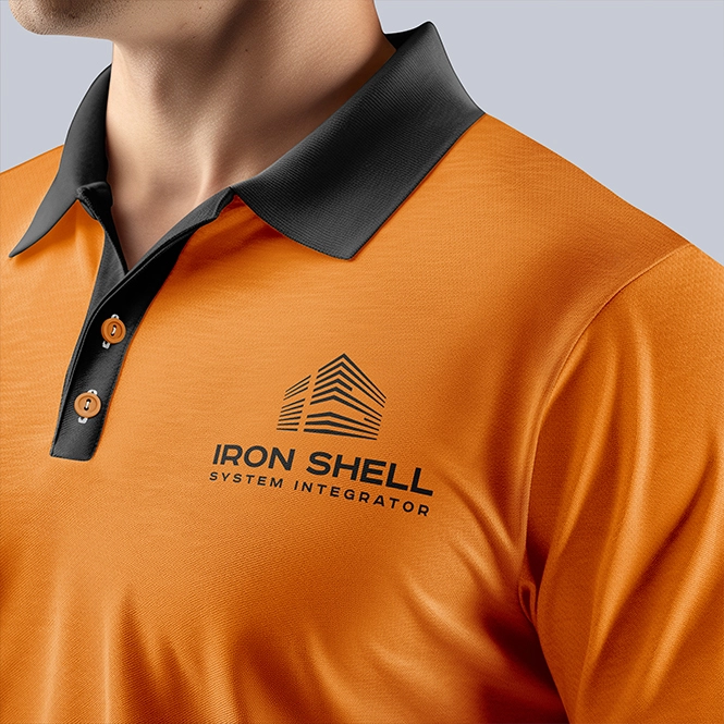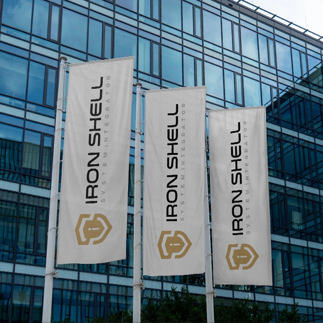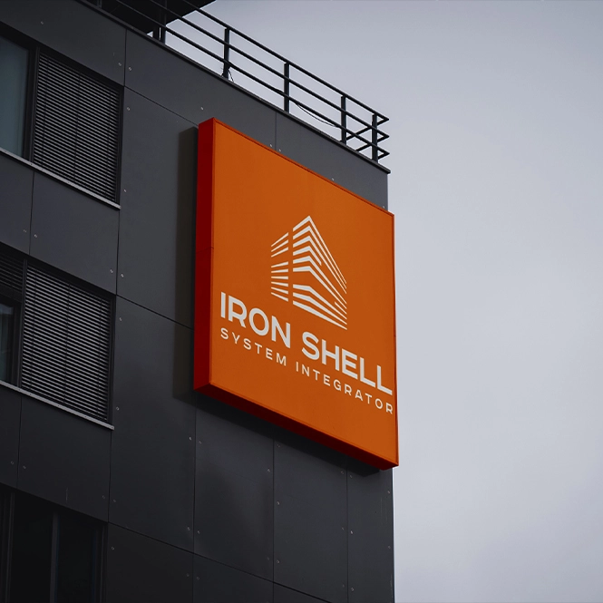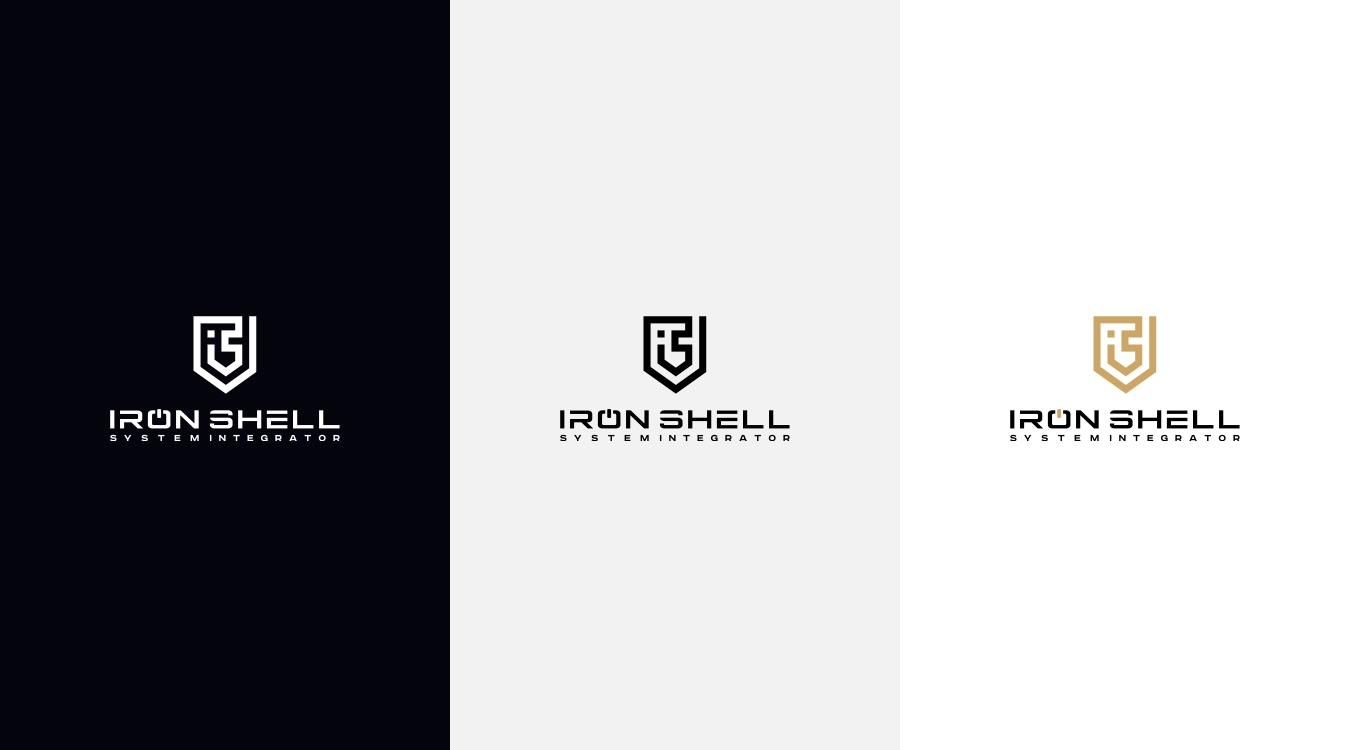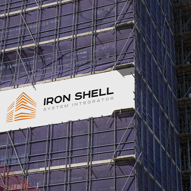 Название Iron Shell стало центральным элементом логотипа и было выполнено на английском языке, что подчёркивает международный потенциал и профессиональный уровень компании. Визуальный стиль учитывает все требования к применению логотипа на различных носителях — от веб-интерфейсов и презентаций до технической документации и оборудования.
